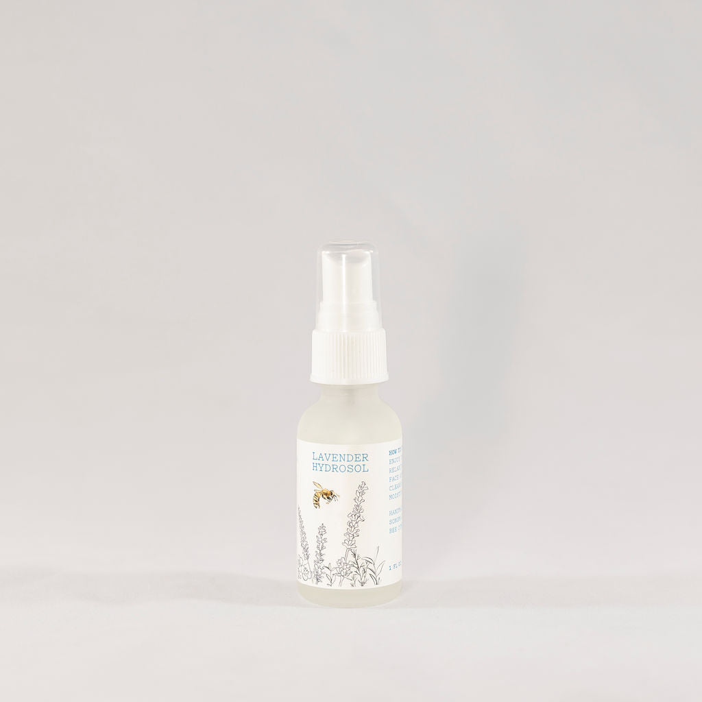 Our travel hydrosol (1 oz) is made from lavender tucked away on a small flower farm that shares a space with our hives. It is a blend of Lavandula Grosso and Lavandula Angustifolia. We harvest and distill the early blooming lavender and leave the rest for the bees. Once the full flower has been open and left for our pollinators, we harvest and distill a second batch, blending the two into a gentle and hydrating hydrosol for your skin.